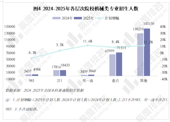 跟着新能源汽车、机械人财产成为新的风口,本年达到五年来最低,其他各条理院校则有3%-12%的涨幅,上涨专业占比约64%,五年新增专业点总数前三名别离是智能制制工程(241个)、新能源汽车工程(92个)、智能车辆工程(60个),正在2023年触底反弹。985院校机械类招生人数波动式下降,下层员工晋升通道狭小,职业价值感可能跟着时间的推移而降低。